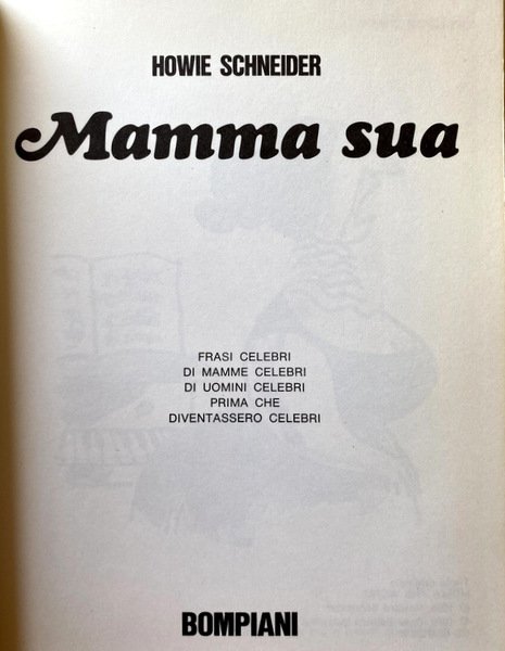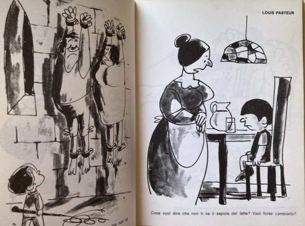 Soggetti: Fumetti, Graphic novels, Umorismo, Satira sociale, Vignette, Comics, Strisce comiche, Disegni, Libri illustrati, Gags, Aforismi, Motti di spirito, Frasi, Madri, Mamme, Uomini illustri, Celebrità, Personaggi storici, Vips, Persone famose, Figli, Famiglia, Libri Vintage Fuori catalogo, Libri per ragazzi, Satirici, Cartoni animati, Collezionismo cartaceo, Anni Sessanta, Anni Settanta, Leonardo da Vinci, Annibale, John Smith, Nonsense, Storia, Arte, Bambini, Louis Pasteur, Marchese de Sade, Charles Lindbergh, Davide, Tarzan, Confucio, Gengis Kahn, Luigi XIV, Giulietta, Vittorio Alfieri, Artisti, Letteratura, Bimbo's Circus, Comics, Humor, Social Satire, Cartoons, Comic Strips, Drawings, Illustrated Books, Aphorisms, Motions of Spirit, Phrases, Mothers, Mothers, Famous Men, Celebrities, Historical Figures, Famous People, Children, Family, Books out of print, Books for boys, Satirists, Paper collectibles, Sixties, Seventies, History, Art, Children, Confucius, Louis XIV, Juliet, Artists, Literature, Schubert