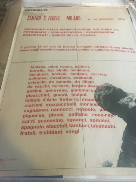 Manifesto / Poster 100 x 70 cm. dell'esposizione Documenti della manifestazione Volterra 73 Centro S. Fedele Milano 8 - 12 gennaio 1974