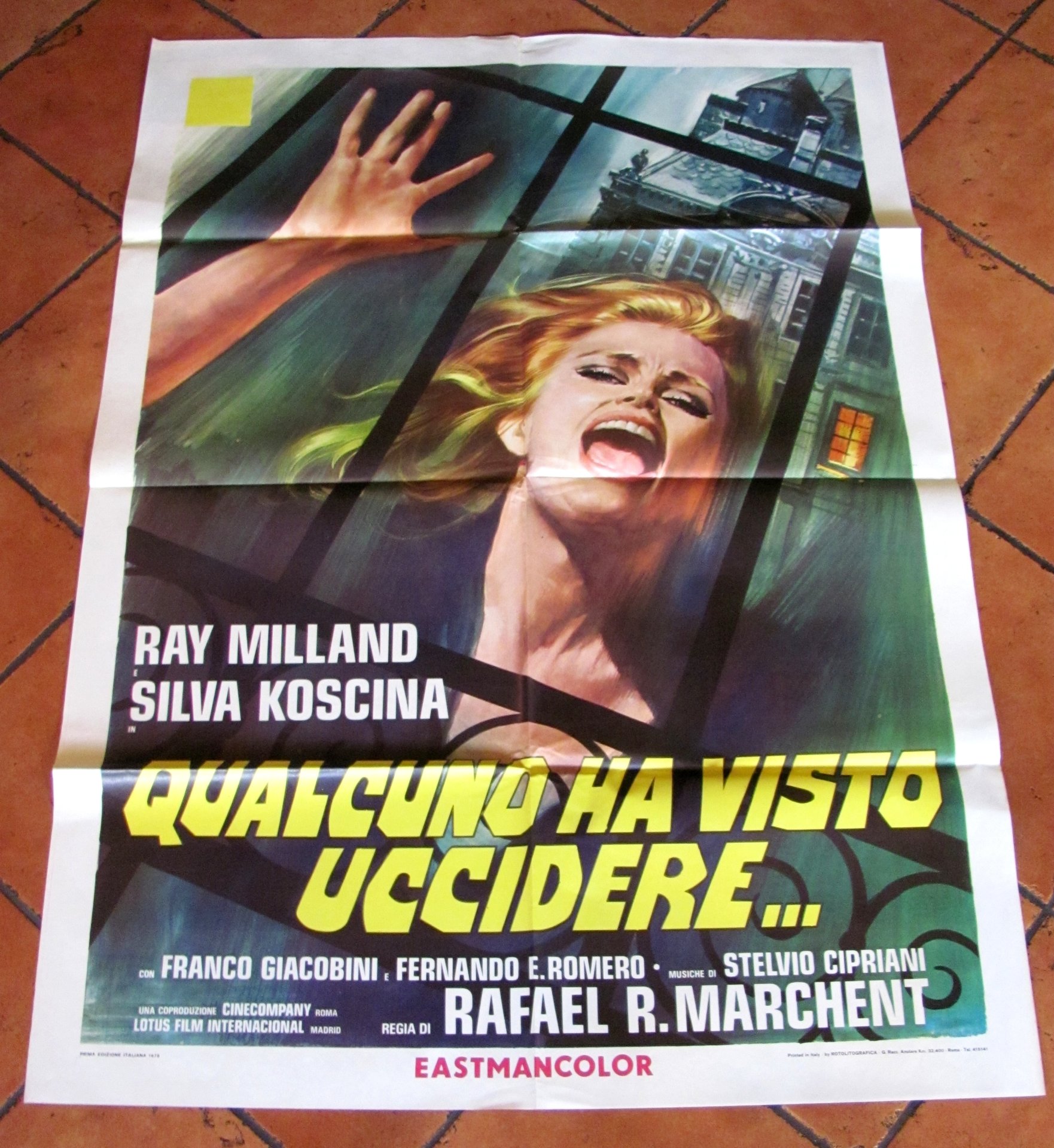 Manifesto Originale - Qualcuno ha visto uccidere... con Ray Milland e Silva Koscina. Regia di Rafael R. Marchent. Coproduzione Cinecompany e Lotus Film Internacional, I edizione Italiana 1975. 100x140. Ottimo stato. 100 140 , Ottimo (Fine)