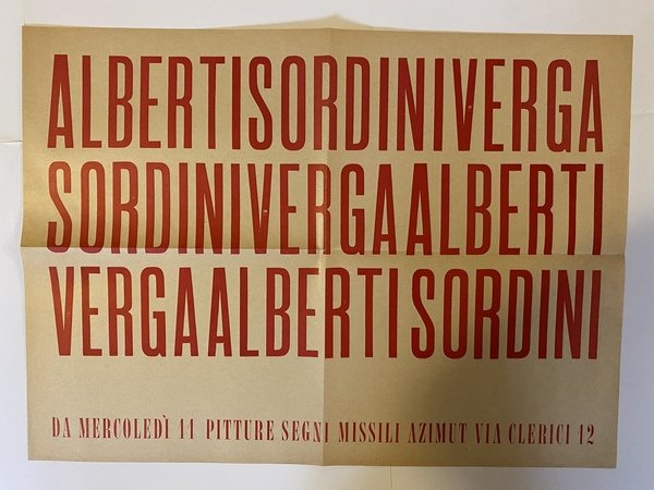Manifesto / Poster 32 x 44 cm. dell’esposizione 11 pitture segni missili Galleria Azimut Milano 11-24 maggio 1960