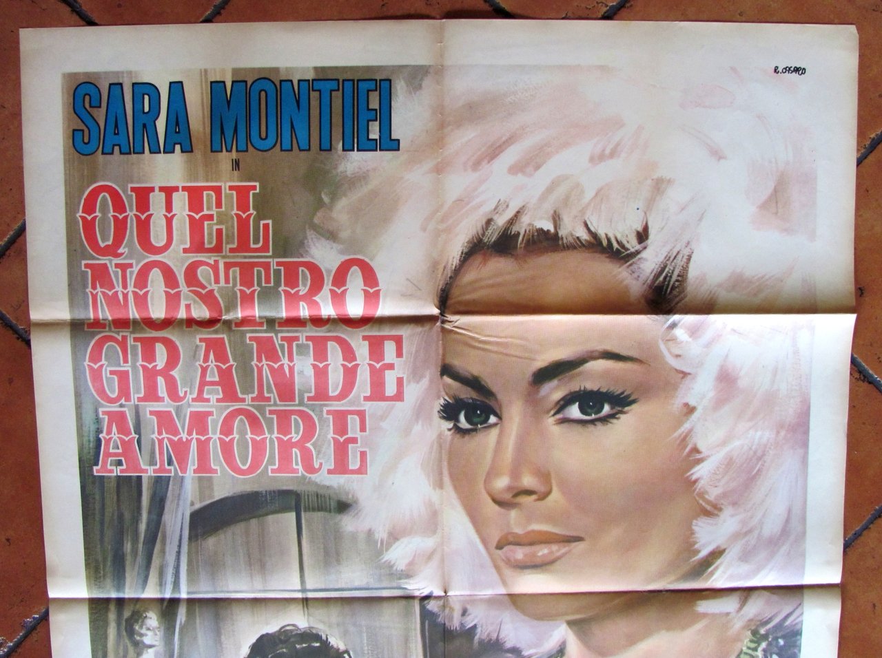 Manifesto Originale Cinema 2F - Quel nostro grande amore con Sara Montiel e Giancarlo Del Duca illustrato da Casaro. Filmes Cinematografica, 1966. Regia di Tullio De Micheli. Manifesto 100x140. Piccolo taglietti e mancanze solo marginali (come da foto). Ottimo stato. 140 100 , Ottimo (Fine)