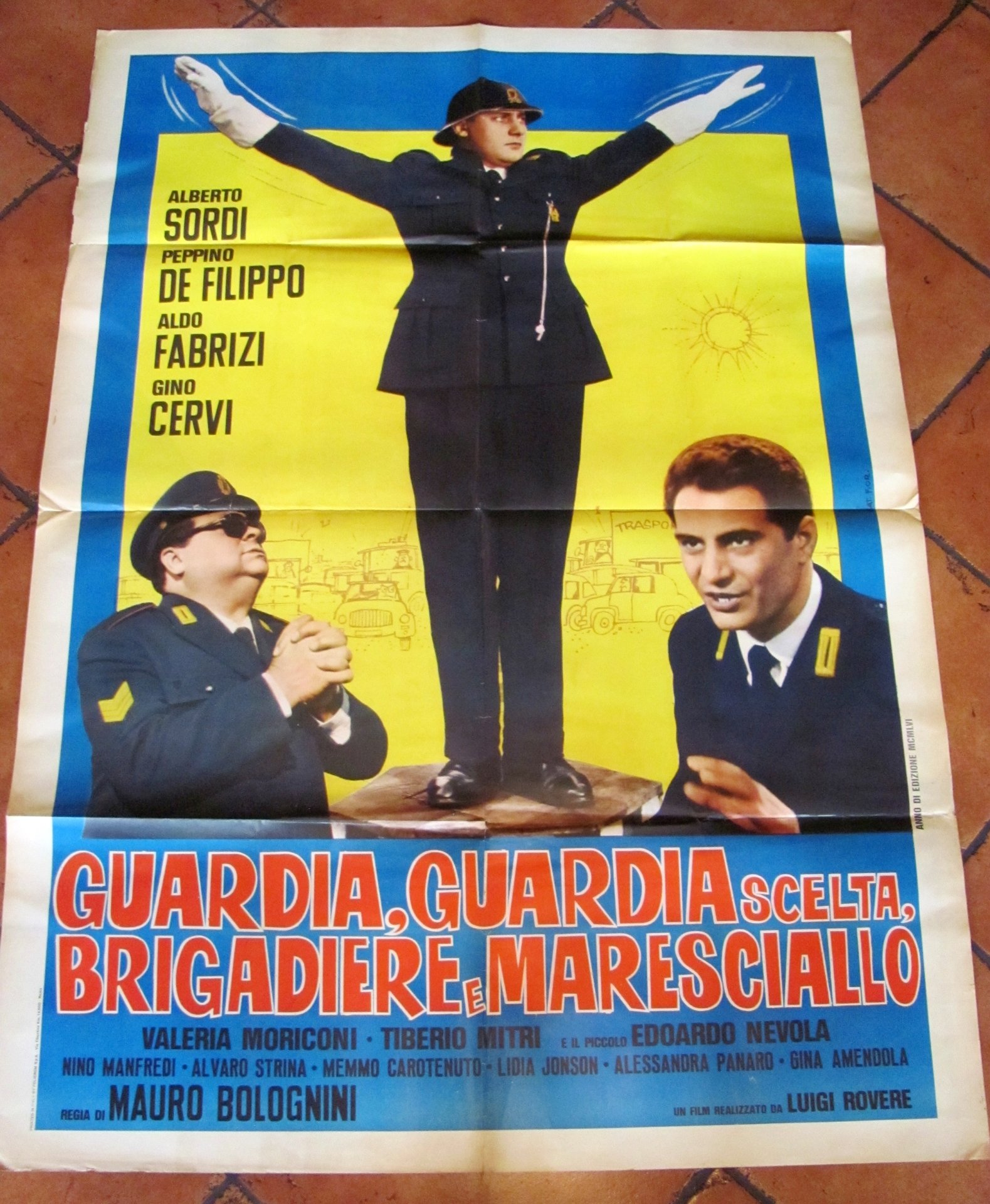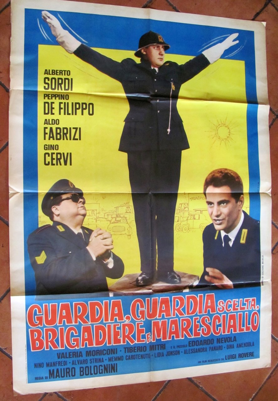 Manifesto originale Cinema Guardia, guardia scelta, Brigadiere e Maresciallo con Alberto Sordi, Peppino De Filippo, Aldo Fabrizi e Gino Cervi e con Nino Manfredi. Regia di Mauro Bolognini. Anno di edizione 1956. Manifesto 1 Foglio 100x140 mai attaccato con minime imperfezioni marginali, Raro e in Ottimo stato. 140 100 , Ottimo (Fine)