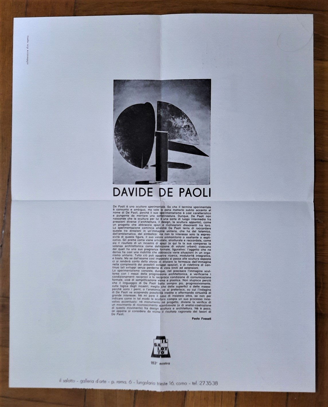 *Manifesto mostra n.183 DAVIDE DE PAOLI. Galleria d'arte Il Salotto - Como. 10 febbraio 1973