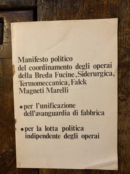 Manifesto politico del coordinamento degli operai della Breda Fucine Siderurgica Termomeccanica Falk