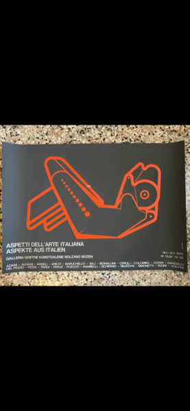 Manifesto / Poster serigrafato 53 x 75 cm. dell'esposizione Aspetti dell'arte italiana Aspekte aus Italien Galleria Goethe Bolzano 14.1 - 31.1 1970