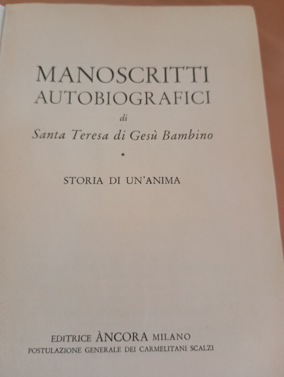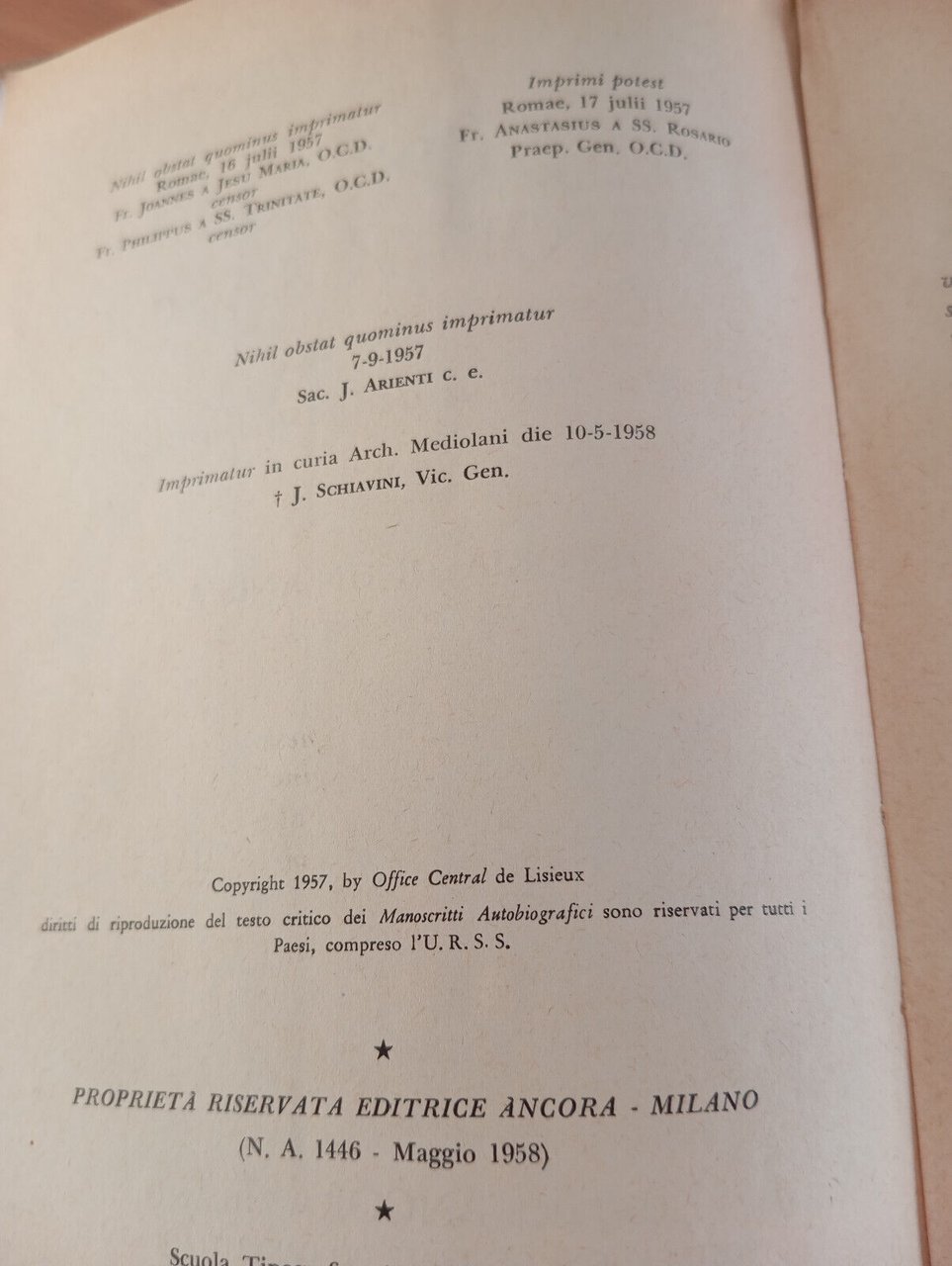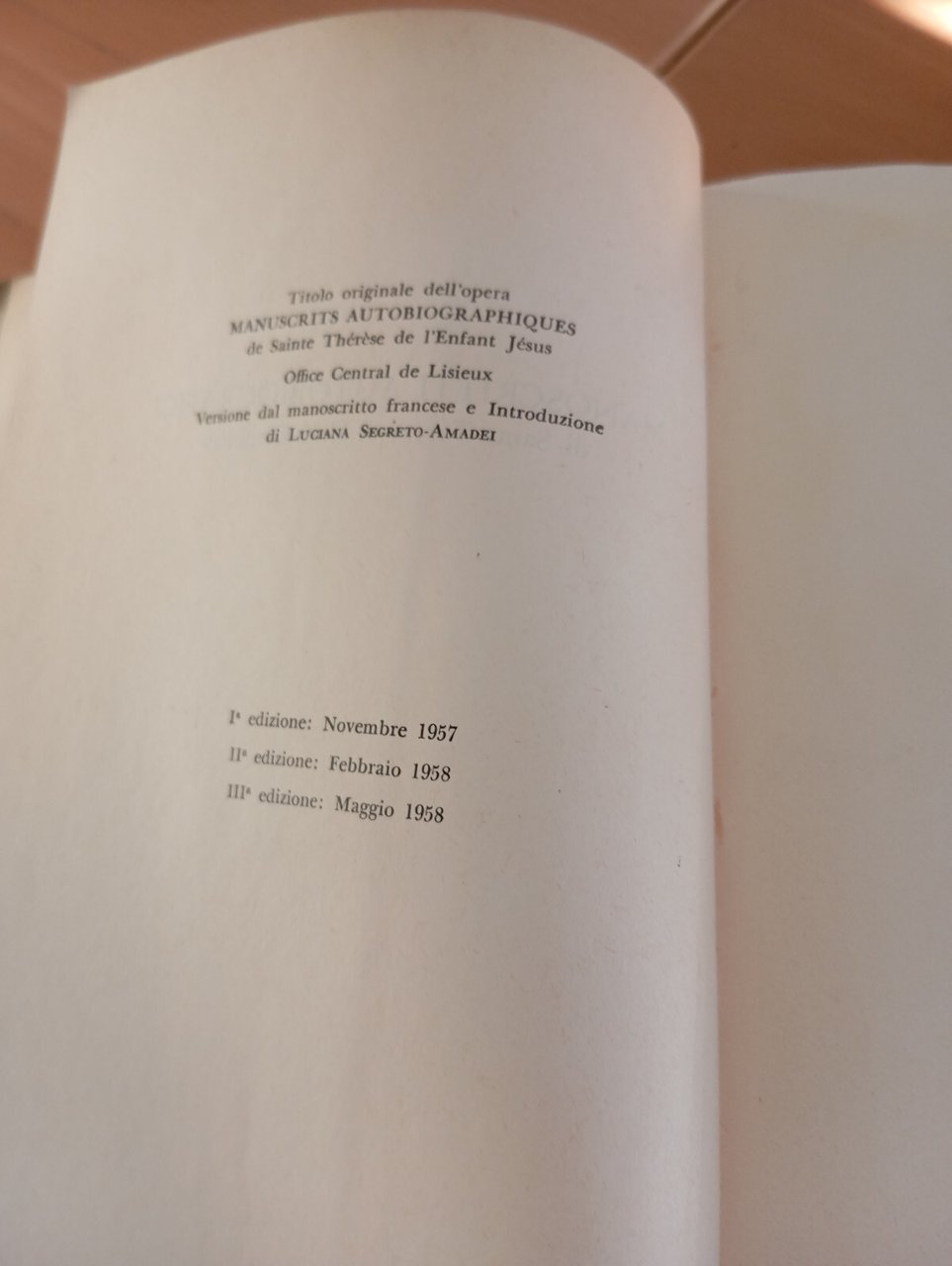 Manoscritti autobiografici Santa Teresa di Gesù Bambino storia di un'anima, 1958
