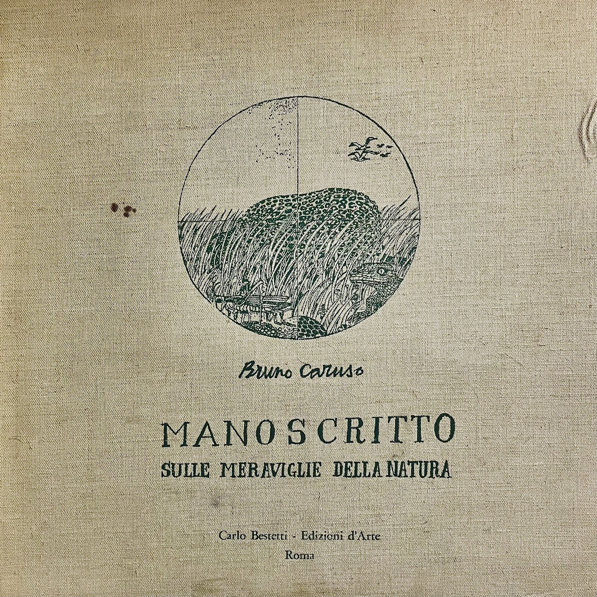 Cofanetto editoriale in piena tela, brossura e velina editoriali, esemplare n. 81, all'occhietto titolo aggiuntivo "Disegni e considerazioni sul mondo visibile. Roma. 1963, 1964, 1965, 1966", al colophon dedica autografa a matita dell'artista a Mario De Micheli. Contiene 11 tavole sciolte in bifolio, stampate in litografia al recto e al verso con testi manoscritti a stampa e bellissime illustrazioni in b/n e a colori di Bruno Caruso (Palermo, 1927 - Roma, 2018). Minimi difetti al cofanetto, volume in ottimo stato di conservazione.