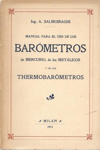 in 16°, pp. VIII, 131, bross. edit. Manuale sui vari tipi di barometri, il loro uso,le avvertenze e gli eventuali errori strumentali, con 20 figure in nero n.t. e numerose tabelle. Piccole mancanze al ds., per il resto ottimo. 373-42