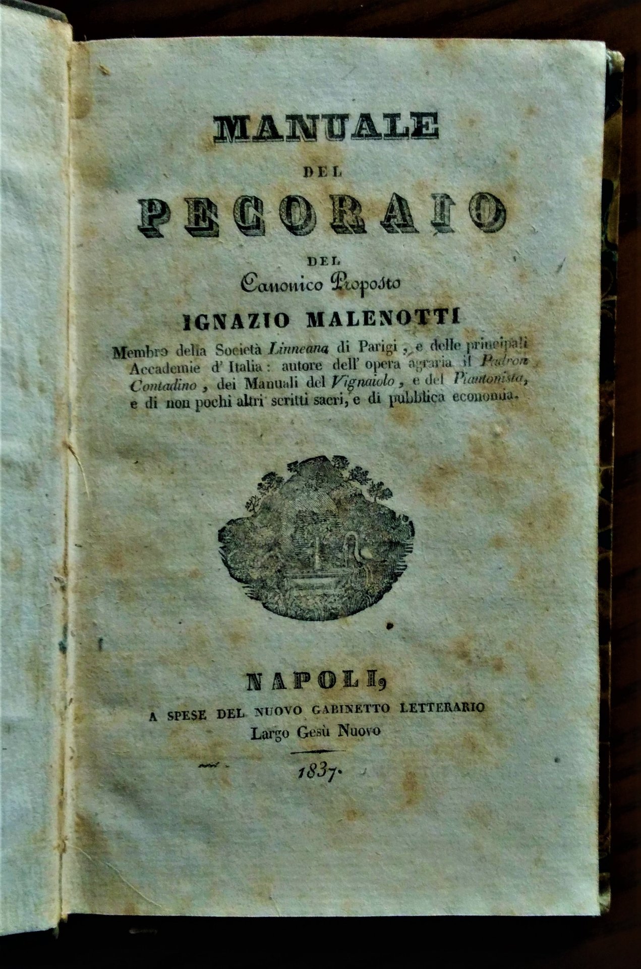 Napoli, A spese del Nuovo Gabinetto Letterario, 1837. 16°, cm. 14,5x9, pp. 204, legatura coeva in mezza pella, titoli e fregi in oro al dorso, piatti in carta decorata. Fioriture leggere ma diffuse, segni d'uso alla legatura, buona copia. Non comune.