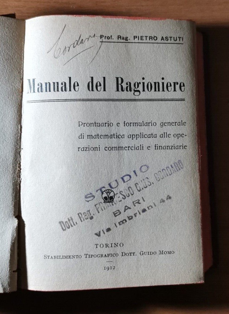 MANUALE DEL RAGIONIERE di Pietro Astuti 1912 Momo Prontuario libro formulario