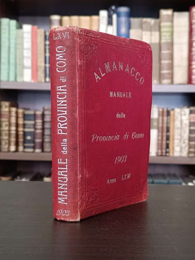 <p style="margin: 0px; font-stretch: normal; font-size: 13px; line-height: normal; font-family: " helvetica=" neue";"=">In-16° (cm. 18,1), legatura editoriale in piena percallina rossa con titolo in argento al dorso e al piatto anteriore inquadrato da cornici con decori agli angoli a secco (alcune tracce d'uso); pp. IX [3] 475 [1b] in stato molto buono (lievi fioriture sparse); con 1&nbsp;carta topografica della Città di Como e 1 carta idrografica del Lario più volte ripiegate fuori testo. Edizione non comune de l'<i>Almanacco statistico della provincia di Como. </i>Compilato da Giuseppe Dell’Acqua, ragioniere capo dell’amministrazione provinciale comense, l’«Almanacco della provincia di Como» nacque come raccolta di notizie statistiche relative alla provincia di Como [prefazione all’edizione del 1838], pubblicata inizialmente con una cadenza annuale e poi sempre più saltuaria. Esemplare molto buono.&nbsp;</p>