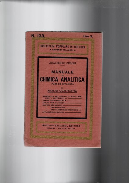 Manuale di chimica analitica pura e applicata. I° analisi qualitativa; II° analisi quantitativa.