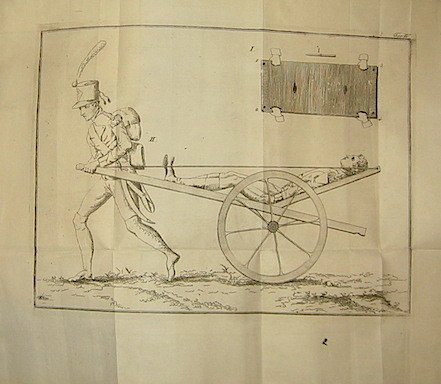 6vo (cm. 19,3), X-348 pp. con 7 tavv. rip. f.t. incise in rame. Legatura coeva in pergamena con fili e titoli oro su doppio tassello al dorso (leggermente scurita). Tagli gialli. Un piccolo strappo marginale che non lede il testo a p. 343. Nel complesso esemplare in ottimo stato di conservazione. L’Autore di questo breve ma importante manuale di medicina militare fu professore all’ospedale militare di Milano e chirurgo di Napoleone. Edizione non comune.