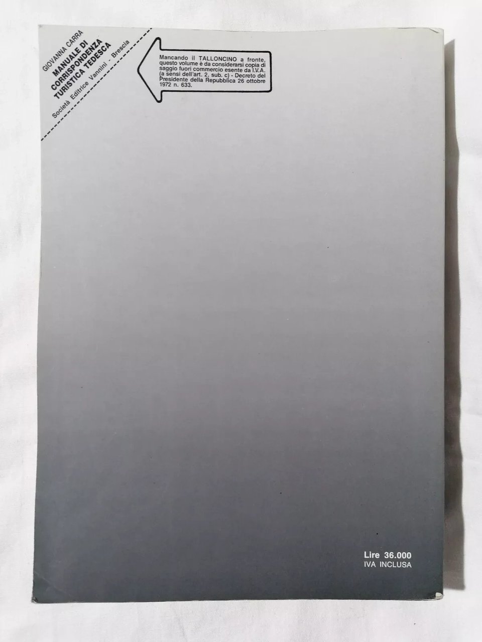 Manuale Di Corrispondenza Turistica Tedesca Libro Giovanna Carra Vannini 1992