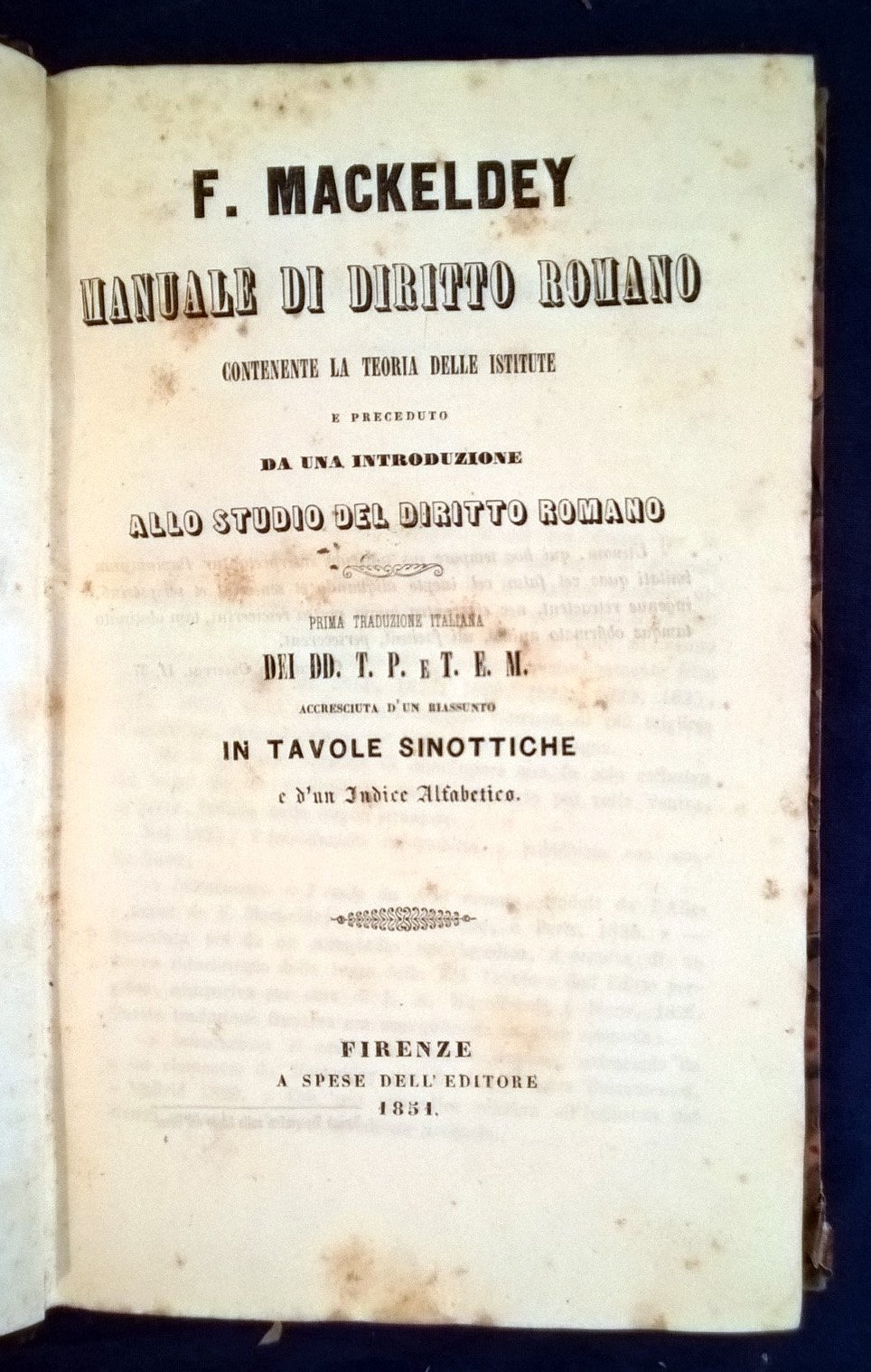 Manuale di diritto romano. Contenente la teoria delle istitute e preceduto da una introduzione allo studio del diritto romano. Prima traduzione italiana […] accresciuta d'un riassunto in tavole sinottiche e d'un indice alfabetico.