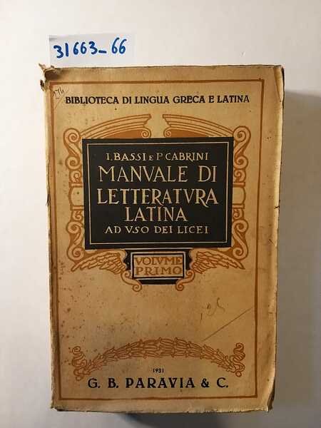 (Collana : Biblioteca di lingua greca e latina) - DETTAGLIO DELLE CONDIZIONI : Da pag.137 intonso - coperta con evidenti segni del tempo ingiallita e con fioriture- pagine ingiallite con fioriture - gore da umido - (1.VII.6).