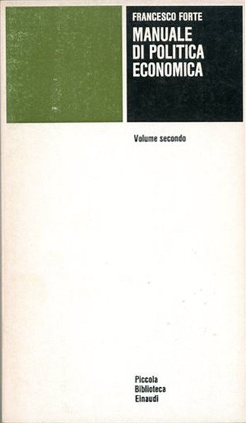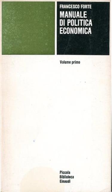 3. ed. riv. e aumentata. 4 v. (XLII, XI, XII, XIII, 1290 p., [1] c. di tav. ripieg., grafici e tabelle) ; 18 x 11 cm. Piccola biblioteca Einaudi. Il presente Manuale - scrive Forte - aspira a dare una trattazione completa del vasto territorio riguardante la politica economica e anche un panorama di quei domini di confine che sono contesi fra essa e la politica, la filosofia della storia, il diritto e la sociologia. . Brossura editoriale, coperta colorata (b/n e verde) in cartoncino flessibile plastificato opaco. Codice libreria 1412.