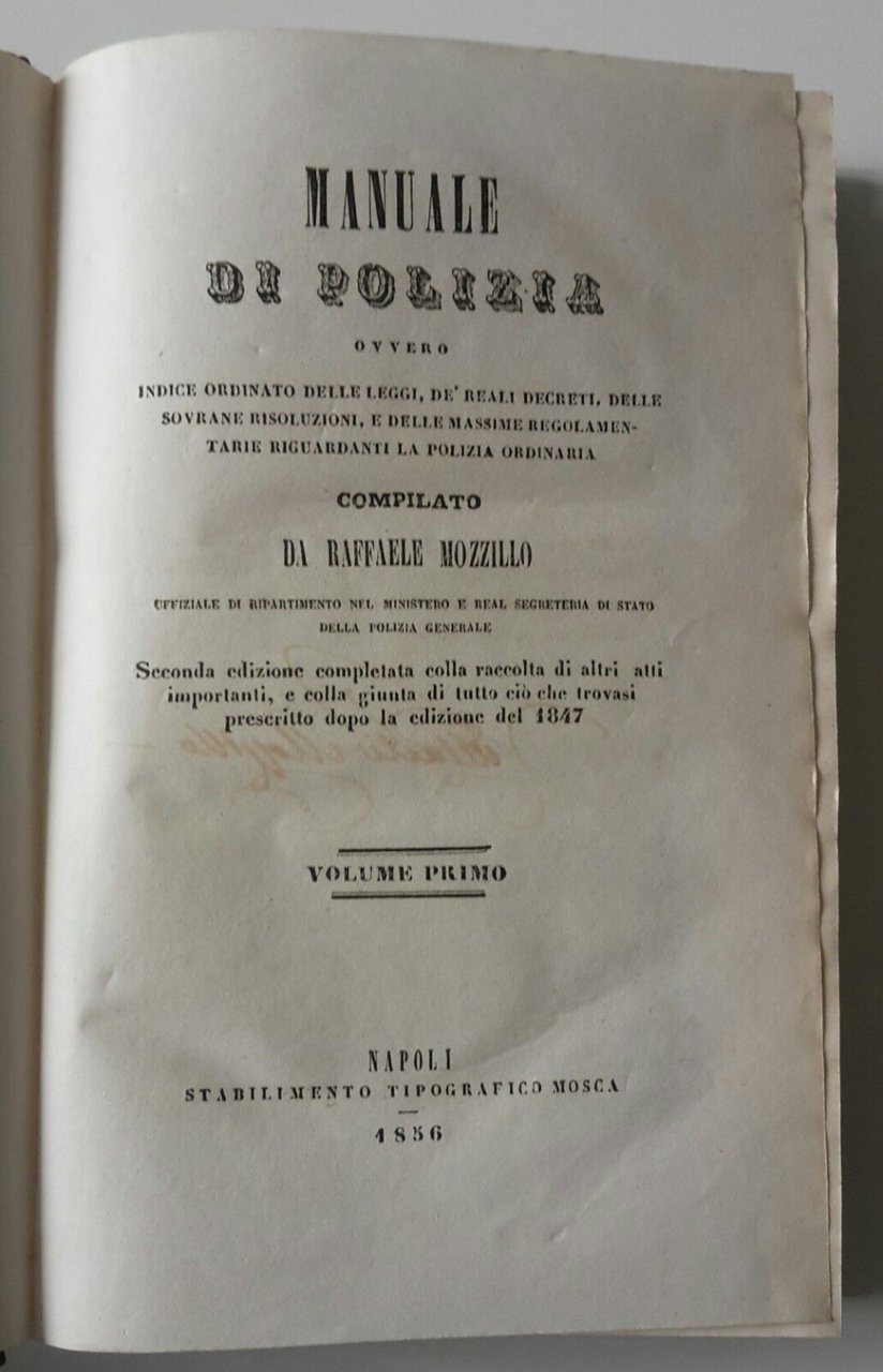 MANUALE DI POLIZIA COMPILATO DA RAFFAELE MOZZILLO TIP. MOSCA 1856