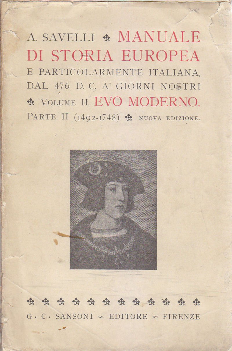 MANUALE DI STORIA EUROPEA E ITALIANA EVO MODERNO 1492 1748 di Savelli libro 1927
