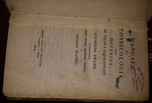 Manuale di tossicologia ossia Dottrina dei veleni e contravveleni di Giuseppe Frank