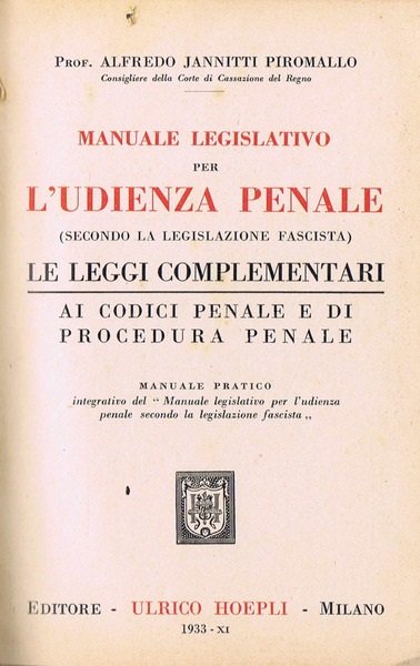 MANUALE LEGISLATIVO PER L'UDIENZA PENALE SECONDO LA LEGISLAZIONE FASCISTA