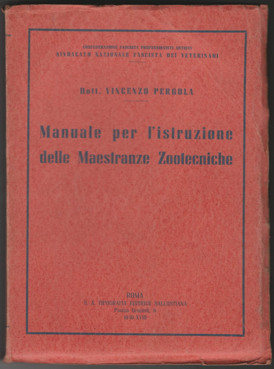 Manuale per l'istruzione delle maestranze zootecniche.