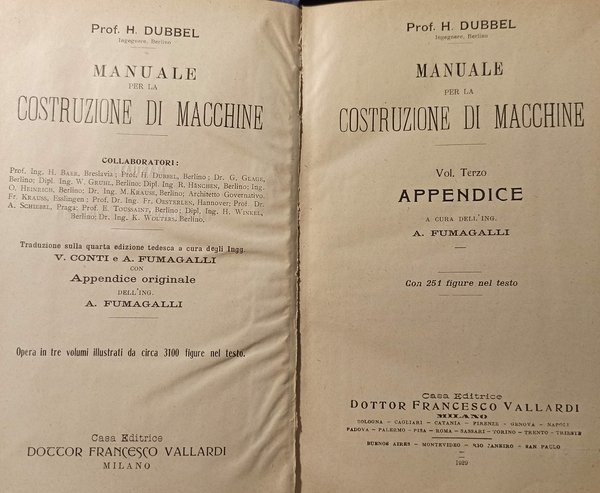 Manuale per la cotruzione di macchine. Volume terzo. Appendice.