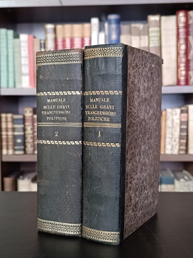 <span style="font-style: normal;">2 volumi in-8° (cm. 20,6), solide legature coeve in mezza pelle a zigrino, dorsi lisci con titolo e fregi in oro (lievissime tracce d'uso al solo tomo II), piatti marmorizzati (minime abrasioni), tagli spruzzati; pp. 815 [1b], 808 [2] 198 di </span><i>Indici</i>, in stato molto buono (lievi fioriture sparse); senza risguardi al solo tomo I. Edizione originale e non comune di questi 2 volumi che al tempo rappresentavano il più aggiornato strumento a disposizione delle Preture per comprendere la portata delle novità introdotte nel Codice penale fin dalle riforme dell'Imperatore Giuseppe II d'Asburgo, despota illuminato che diede all'Austria una legislazione penale tra le più avanzate d'Europa, ispirata peraltro alle idee del giurista milanese Cesare Beccaria. Il suo successore, Leopoldo II d'Asburgo, portò pressoché a perfezione l'impianto giuseppino, emandando un Codice che sarebbe stato attuato sotto Francesco I e del quale, in questi due volumi, vengono illustrati dettagliatamente i paragrafi. (NA5)