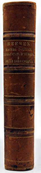 Mezza pelle ottocentesca con titoli e filetti dorati sul dorso, tre volumi legati in uno, 8vo cm15x22, pp 213 (9), 304, 310 (2). Buono stato, lievi segni d'uso sulla legatura. Opera completa, prima edizione italiana di una delle più importanti opere dello storico di Gottinga, incentrata sul concetto di equilibrio fra le nazioni come chiave di interpretazione della storia europea.