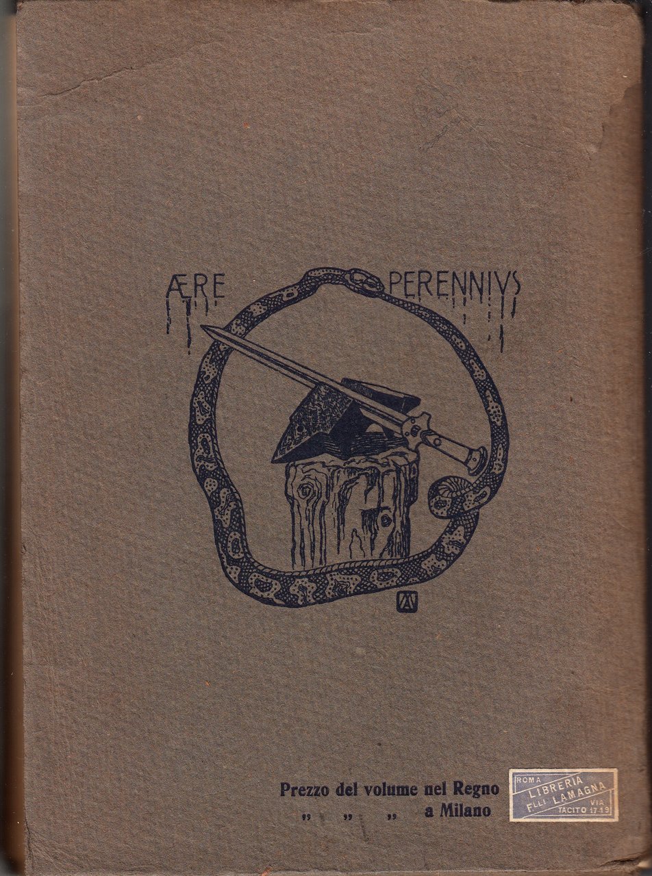 III edizione, ritratto e decorazioni di A.Magrini, in-8, pp.251+6, br.ed., ritratto a colori al piatto della copertina e all'antiporta. Testo decorato da belle incisioni in xilografia a più colori di A. Magrini. Vita, opere teoriche, dramma e stile wagneriano. Ritratto a colori applicato al piatto di copertina, quest'ultimo staccato ma presente. Al retro di copertina conserva il bollino della Libreria Frat.lli Lavagna, Via Tacito 17-19, Roma