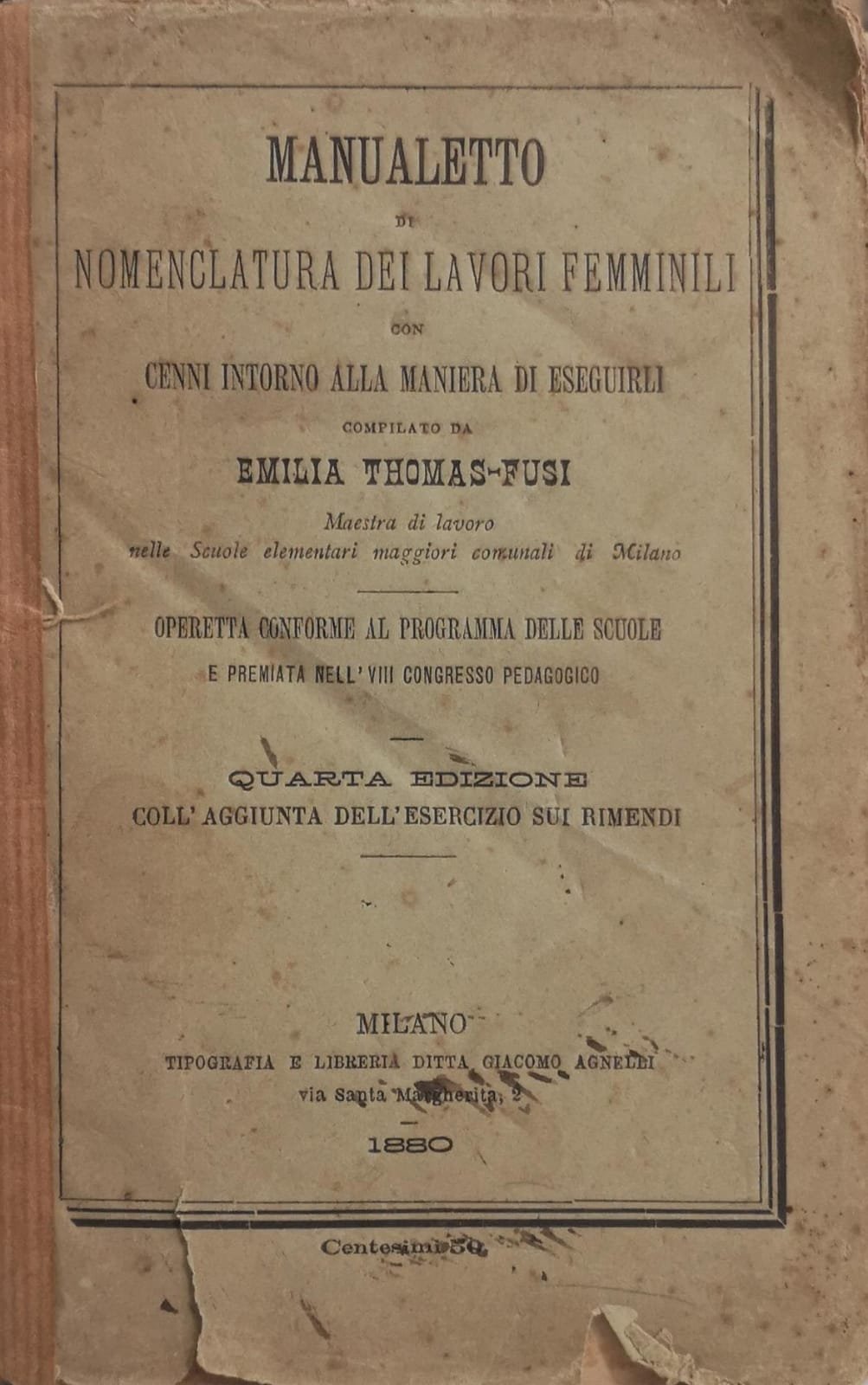 MANUALETTO DI NOMENCLATURA DEI LAVORI FEMMINILI. - Con cenni intorno alla maniera di eseguirli. IV edizione coll'aggiunta dell'esercizio sui guanti a maglia.