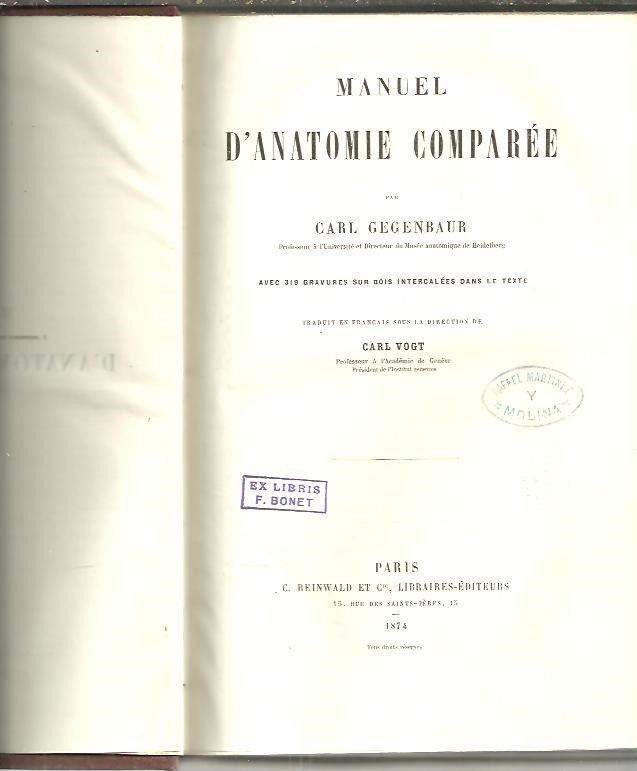 Sello anterior poseedor. Lomo algo deslucido. Trad. C. Vogt. 319 Grabados. Enc. Tela ed.