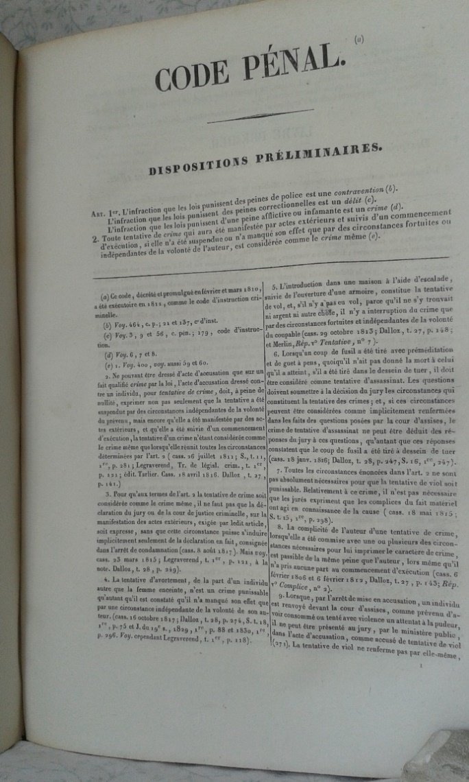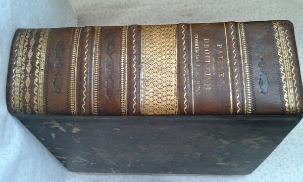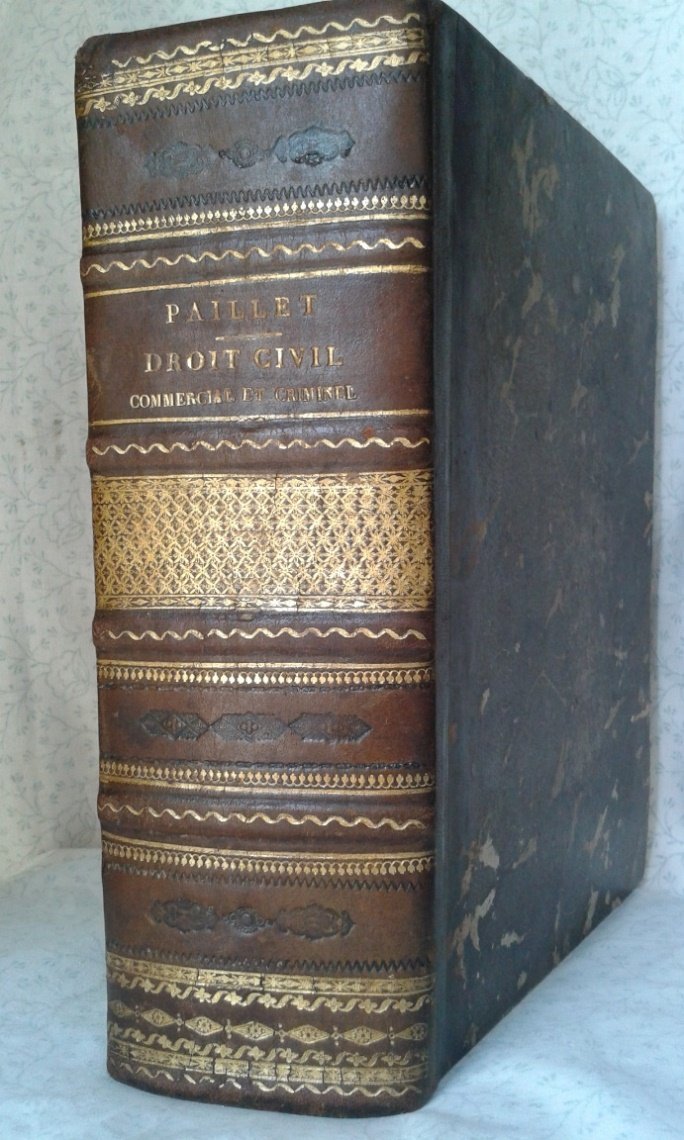 Volume in 4 grande, elegante legatura originale in mezza pelle, dorso riccamente ornato con impressioni a secco e decorazioni in oro, titolo inciso in oro, sguardie, occhiello, frontespizio, introduzione XXX pp, occhiello al Codice Civile, tavola delle abbreviazioni, occhiello alla Costituzione Belga, LXIV pp., occhiello al Codice Civile, 719 pp., XV pp di indice, 1 carta di Appendice, occhiello al Codice di Procedura Civile, 282 pp., VIII pp. di indice, 2 carte di Appendice, occhiello al Codice di Commercio, 132 pp, occhiello al Code dInstruction Criminelle, 108 pp., occhiello al Codice Penale, 116 pp., ulteriori 116 pp. con aggiunte legislative riguardanti argomenti vari: acqua, caccia, pesca, ecc. Tavola cronologica finale. Testo francese su due colonne. Esaustivo manuale di diritto, in ottimo stato e bella veste legatoriale.