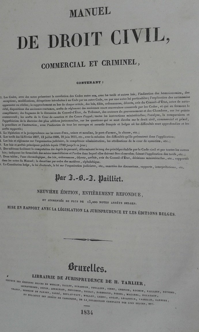 MANUEL DE DROIT CIVIL, COMMERCIAL ET CRIMINEL. Neuvime dition, entirement refondue, et augmente de plus de 15000 notes arrts belges, mise en rapport avec la lgislation, la jurisprudence et les ditions belges.