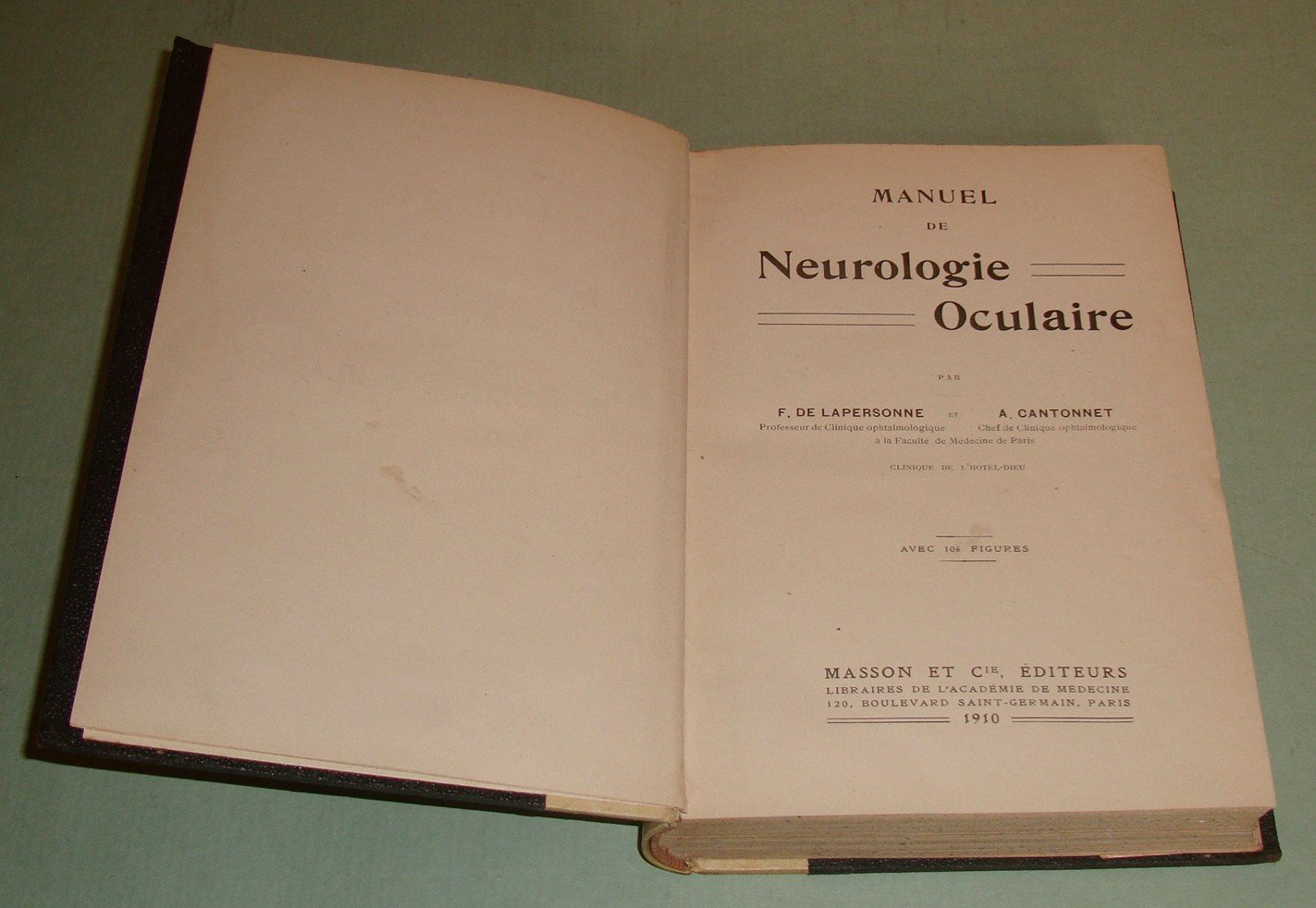 Manuel de neurologie Oculaire. Avec 106 figures.