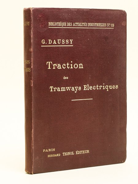 1 vol. in-8 reliure pleine percaline souple bordeaux, Bibliothèque des Actualités Industrielles, Librairie Bernard Tignol, Librairie de l'Ecole Centrale des Arts et manufactures, Paris, s.d. [ 1909 ], 164 pp. et 4 ff. Edition originale. Etat très satisfaisant (ancien cachet d'institution religieuse, étiquette de cote en garde, rouss. parfois fortes) pour ce titre rare.