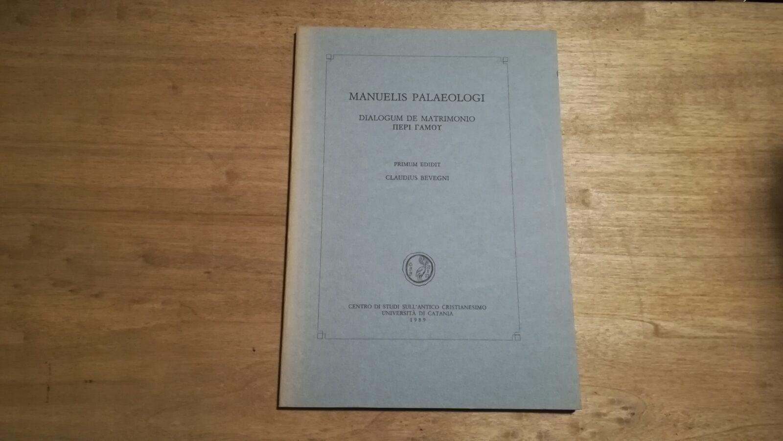Manuelis palaeologi. Dialogum de matrimonio
