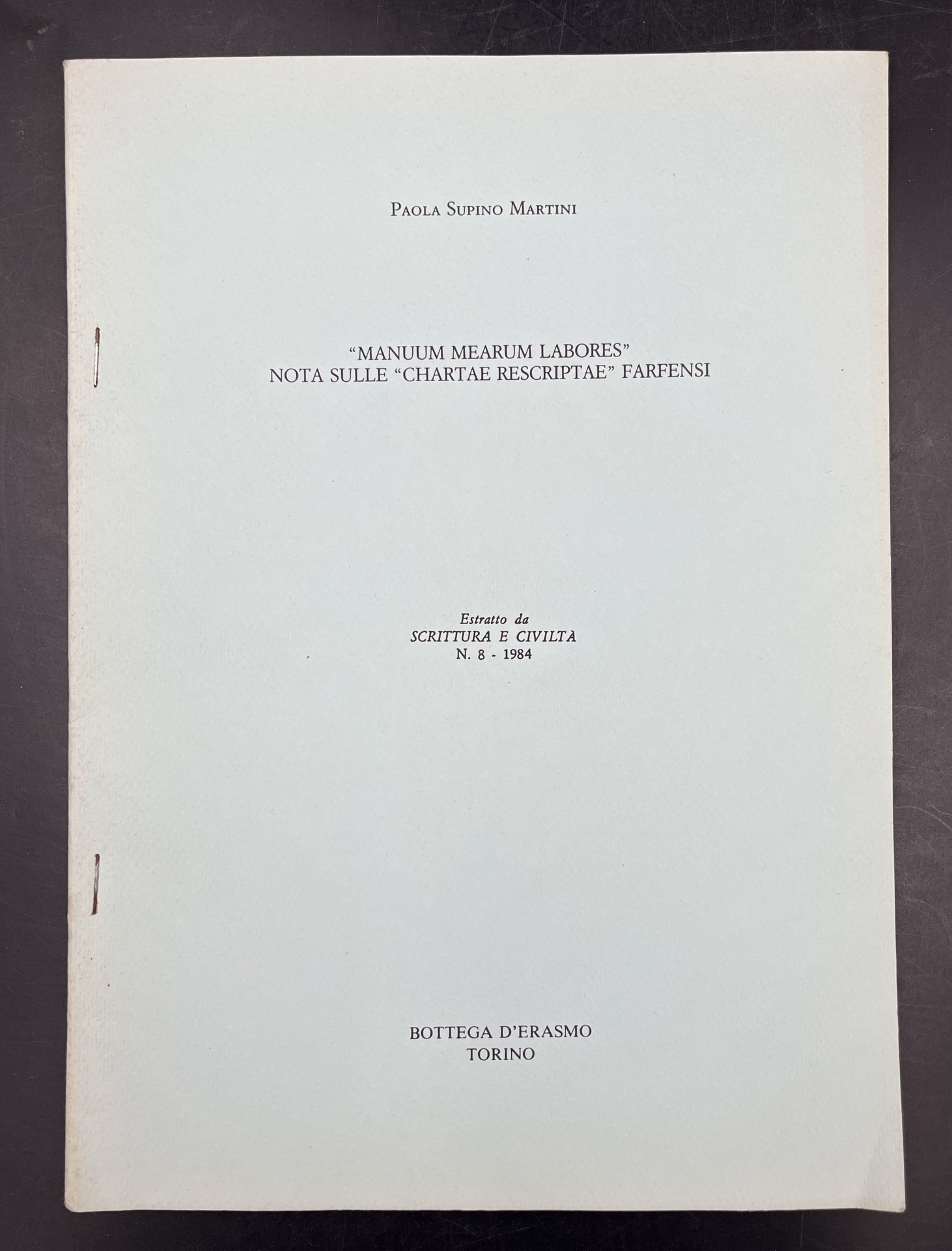 "Manuum mearum labores". Nota sulle "CHARTAE RESCRIPTAE" FARFENSI. Estr. orig. da "Scrittura e civiltà", n. 8, 1984.