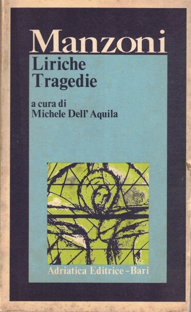 Alessandro Manzoni, Liriche Tragedie, a cura di Michele Dell’Aquila, Adriatica Editrice, Bari 1974, pp. LVI, 381, cm 20, br. ed. Indice: Manzoni lirico e tragico – Cronologia manzoniana – Profilo di storia della critica – Bibliografia – Dalle poesie giovanili, rifiutate, inedite (Del Trionfo della Libertà. Canto I – Qual su le Cinzie cime. Ode – Autoritratto – A Francesco Lomonaco – Adda. Idillio – Dai Sermoni: I. A G. B. Pagani – In morte di Carlo Imbonati. Carme – Dall’Urania – Il Natale del 1883 – Ognissanti) – Inni Sacri (Il Natale – La Passione – La Risurrezione – La Pentecoste – Il Nome di Maria) – Odi civili (Il Cinque maggio – Marzo 1821) – Tragedie (Prefazione al Carmagnola – Notizie storiche – Il Conte di Carmagnola. Tragedia – Notizie storiche relative all’Adelchi – Adelchi. Tragedia). Minima brunitura della carta, per il resto perfetto.