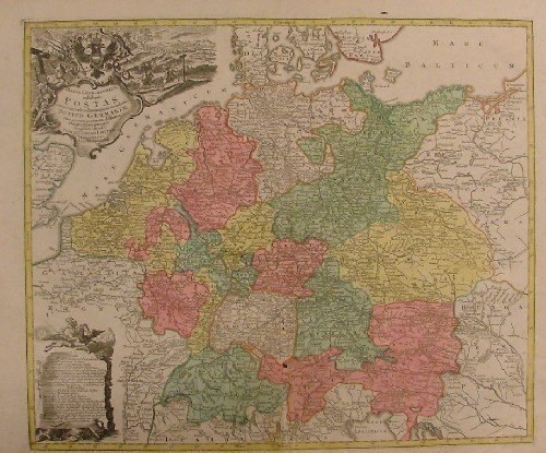 Mappa Geographica exhibens Postas omnes tam vehiculares quam veredarias Totius Germaniae cum earum accurata distantia. Diligentissime propriis sumptibus excudit"