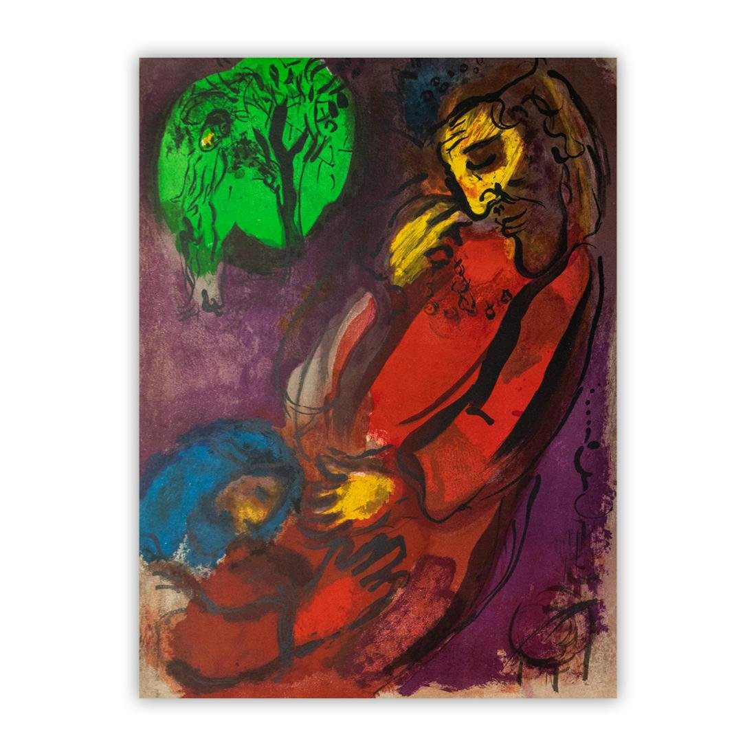 Marc Chagall - DavidDimensioni: 35,5x26,2 cm Ce double numéro de VERVEest consacré à la reproduction intégrale en héliogravuredes 105 planches gravées à l'eau-forte par Marc CHAGALL,entre 1930 et 1955, pour l'illustration de la Bible.L'artiste a composé spécialement pour le présent ouvrage16 lithographies en couleurs et 12 en noir,ainsi que la couverture et la page de titre.Ce volume a été achevé d'imprimer le 10 Septembre 1956,par les Maitres-Imprimeuris DRAEGER Frères pour l'héliogravureet par MOURLOT Fréres pour la lithographie. Copyright by VERVE, Paris-France 1956PRINTED IN FRANCEMarc Chagall Bible, Vol. VIII, N. 33 et 34 Note: L'opera viene venduta senza cornice, immagine a scopo dimostrativo.