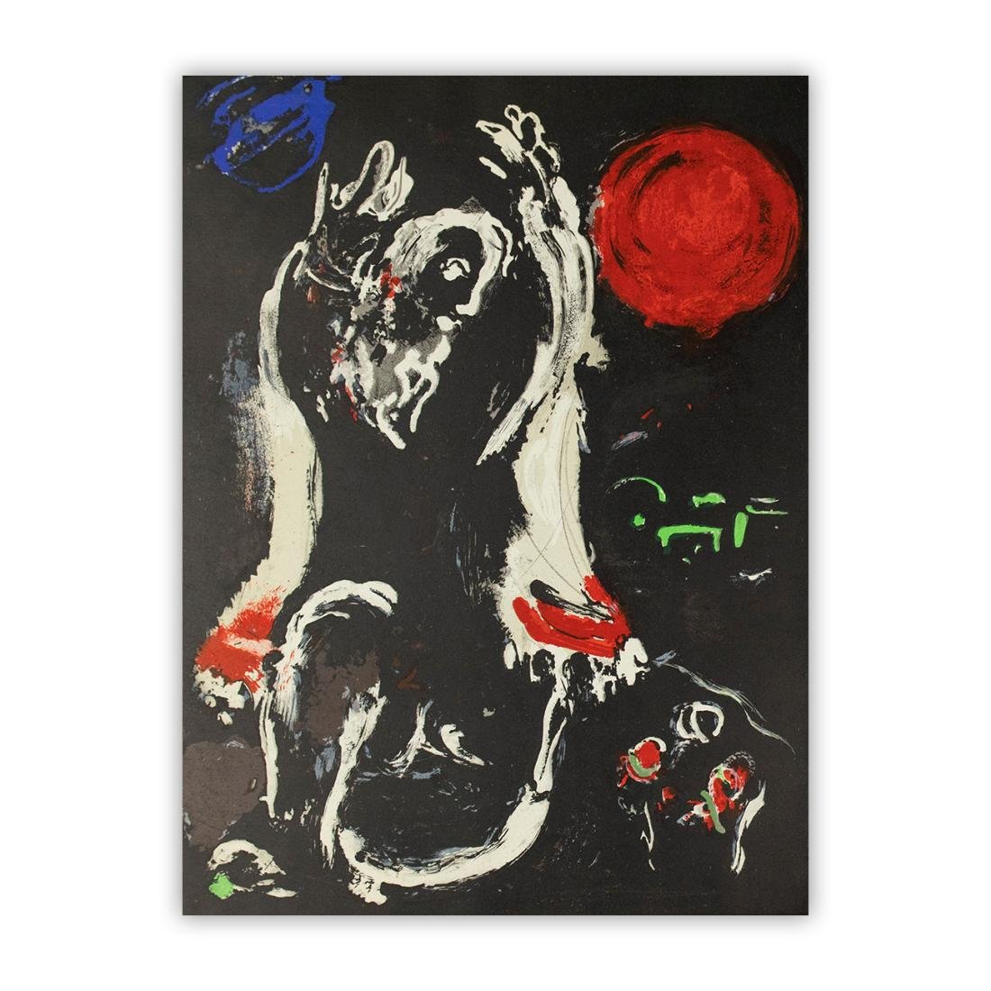 Marc Chagall - IsaieDimensioni: 35,5x26,2 cm Ce double numéro de VERVEest consacré à la reproduction intégrale en héliogravuredes 105 planches gravées à l'eau-forte par Marc CHAGALL,entre 1930 et 1955, pour l'illustration de la Bible.L'artiste a composé spécialement pour le présent ouvrage16 lithographies en couleurs et 12 en noir,ainsi que la couverture et la page de titre.Ce volume a été achevé d'imprimer le 10 Septembre 1956,par les Maitres-Imprimeuris DRAEGER Frères pour l'héliogravureet par MOURLOT Fréres pour la lithographie. Copyright by VERVE, Paris-France 1956PRINTED IN FRANCEMarc Chagall Bible, Vol. VIII, N. 33 et 34 Note: L'opera viene venduta senza cornice, immagine a scopo dimostrativo.