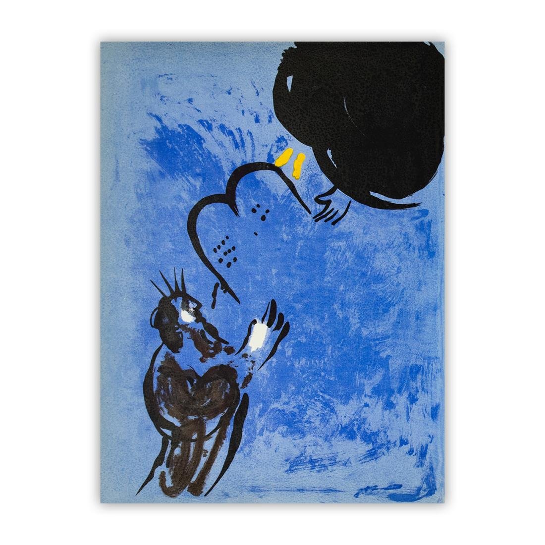 Marc Chagall - Moise reçoit les Tables de la Loi.Dimensioni: 35,5x26,2 cm Ce double numéro de VERVEest consacré à la reproduction intégrale en héliogravuredes 105 planches gravées à l'eau-forte par Marc CHAGALL,entre 1930 et 1955, pour l'illustration de la Bible.L'artiste a composé spécialement pour le présent ouvrage16 lithographies en couleurs et 12 en noir,ainsi que la couverture et la page de titre.Ce volume a été achevé d'imprimer le 10 Septembre 1956,par les Maitres-Imprimeuris DRAEGER Frères pour l'héliogravureet par MOURLOT Fréres pour la lithographie. Copyright by VERVE, Paris-France 1956PRINTED IN FRANCEMarc Chagall Bible, Vol. VIII, N. 33 et 34 Note: L'opera viene venduta senza cornice, immagine a scopo dimostrativo.