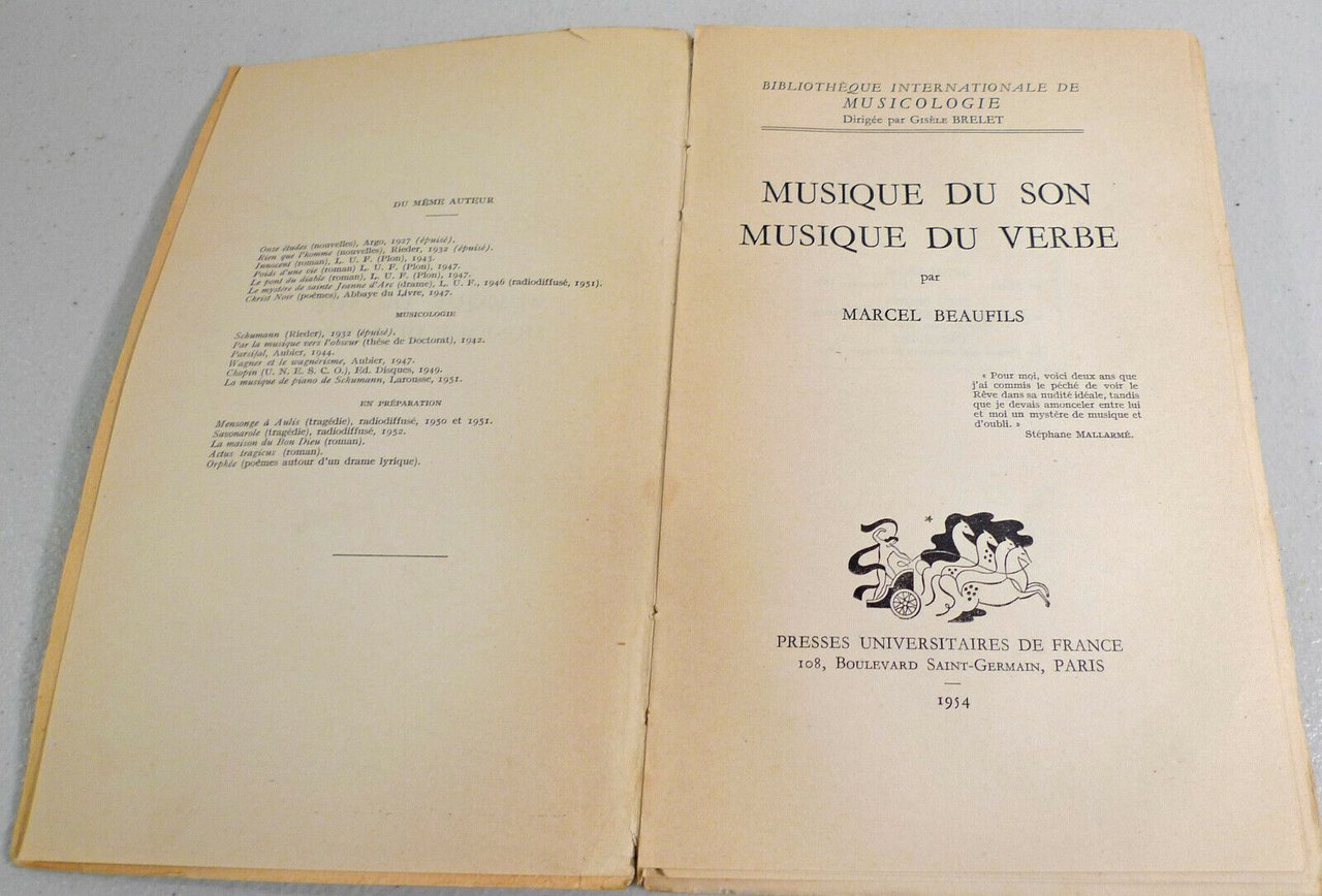 Marcel Beaufils,MUSIQUE DU SON MUSIQUE DU VERBE,1954 P.U.F.[musica,musicologia