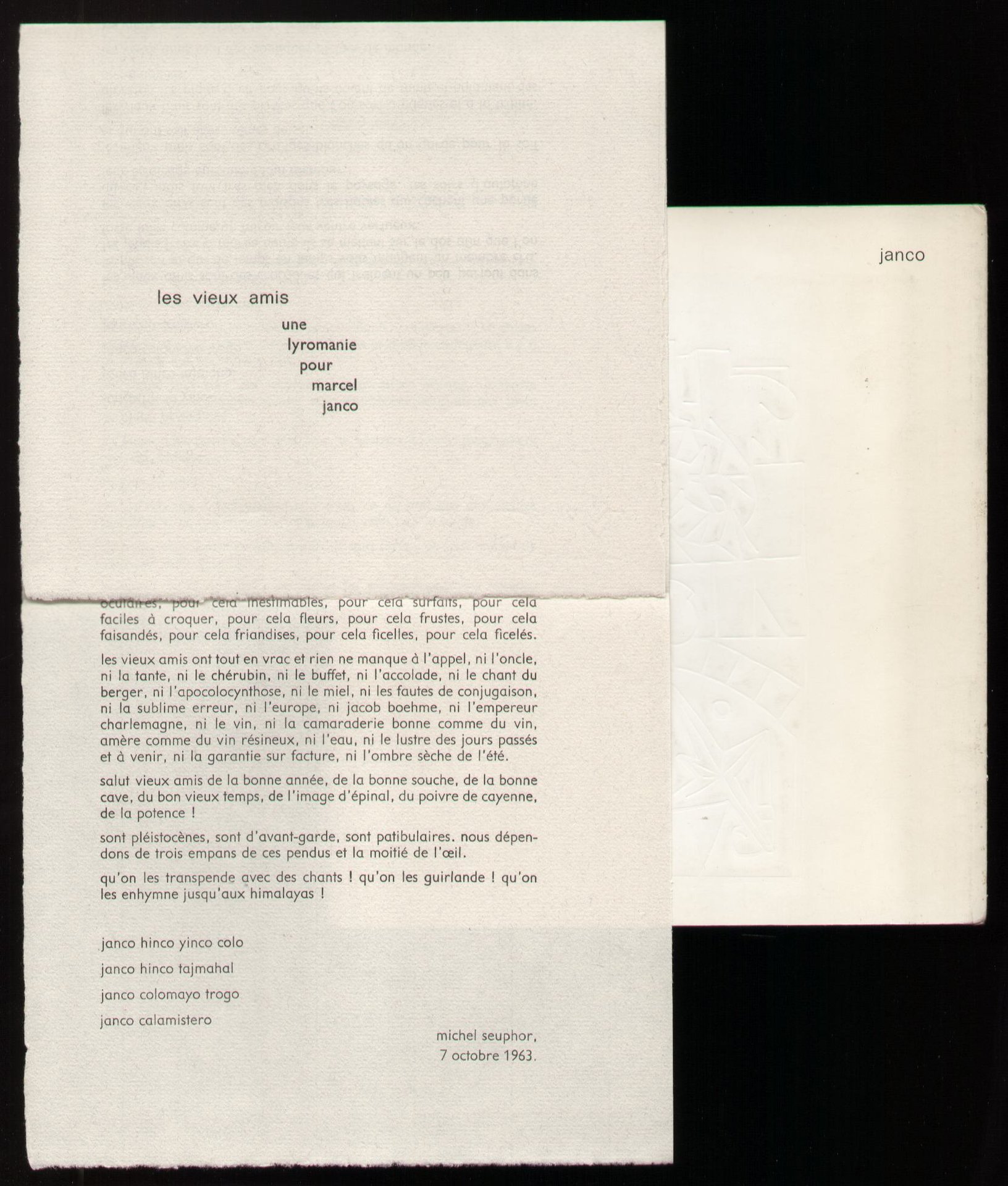 Bross. ed. sov. con motivo calcografico al piatto (20X18) pp. 28 Catalogo della mostra con riproduzioni b/n e col. Il testo di Jean Arp è contenuto nel catalogo mentre quello di Michel Seuphor è stampato su una locandina allegata e ripiegata Ottimo stato (bs)