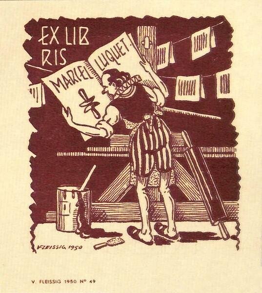 EX LIBRIS, XILOGRAFIA ORIGINALE Marcel Luquet - V.Fleissig 1950 Dimensioni: 9,4 x 10,5 cm Perfetto stato di conservazione generale EX LIBRIS, ORIGINAL XILOGRAPHY Marcel Luquet - V.Fleissig 1950 Dimensions: 9.4 x 10.5 cm Perfect general condition