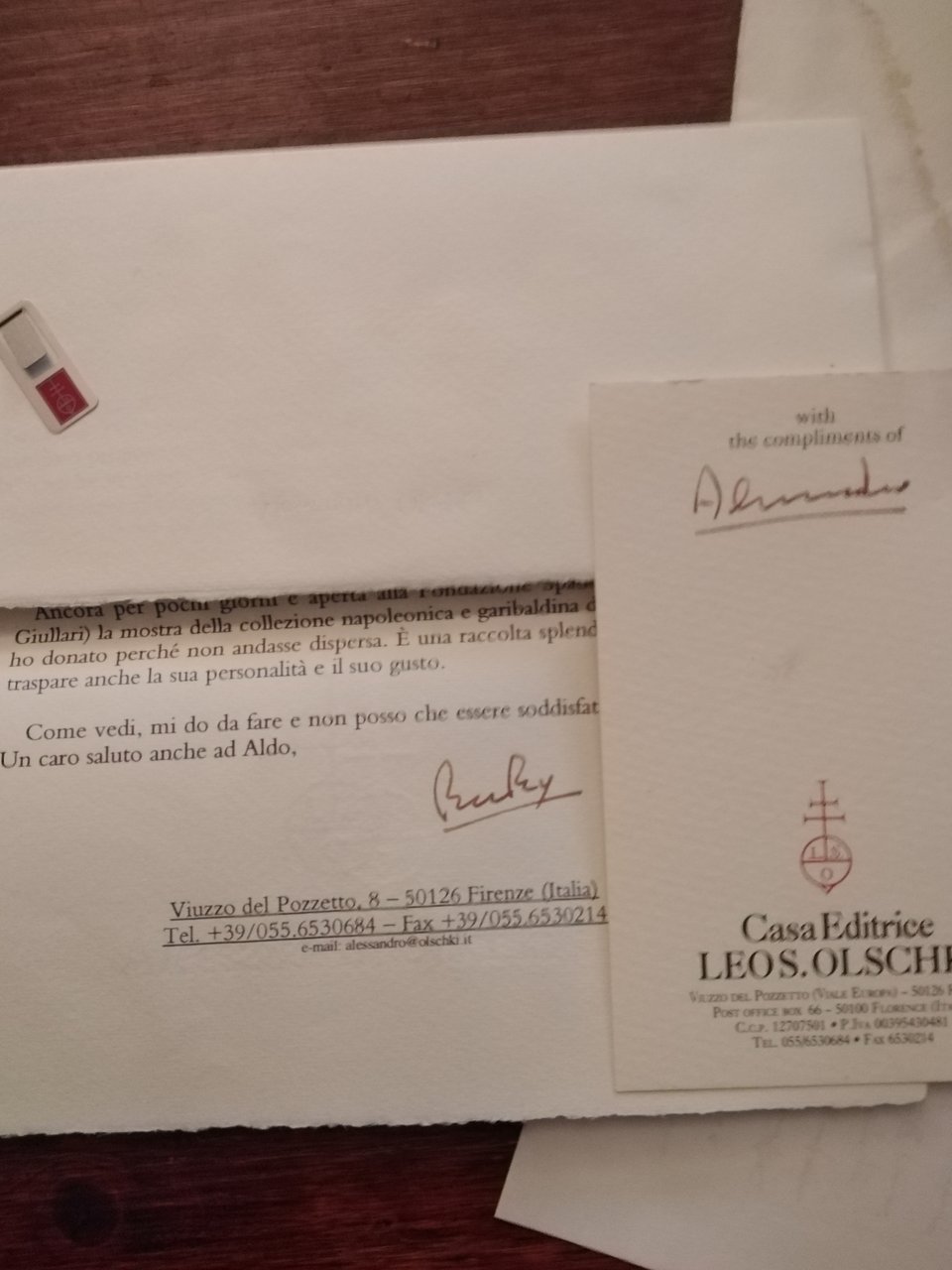 Firenze, Olschki, 2002. Edizione limitata fuori commercio in onore di Marcella Olschki, nipote del fondatore della casa editrice. Br. Ed. In ottavo, pp. 134. Volume impreziosito da una lettera inviata all'autore, dove Alessandro viene nominato con il suo soprannome, un biglietto di risposta dell'autore su cartoncino con intestazione della casa editrice e un fermaglio con logo della Olschki. Quasi pari al nuovo.