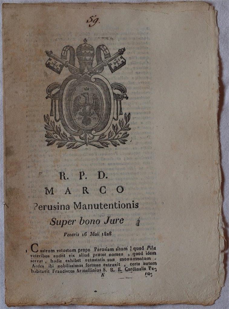 MARCO PERUSINA MANUTENTIONIS SUPER BONO JURE VENERIS 16 MAII 1828