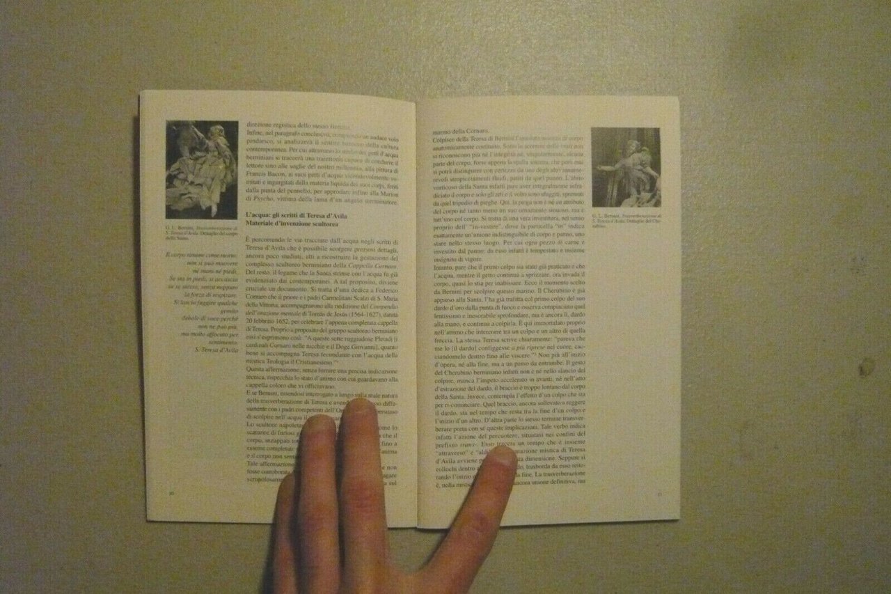 L'analisi dell'acqua. Bernini, Bacon, Hitchcock”. Ha animato in seguito un corso d'arte