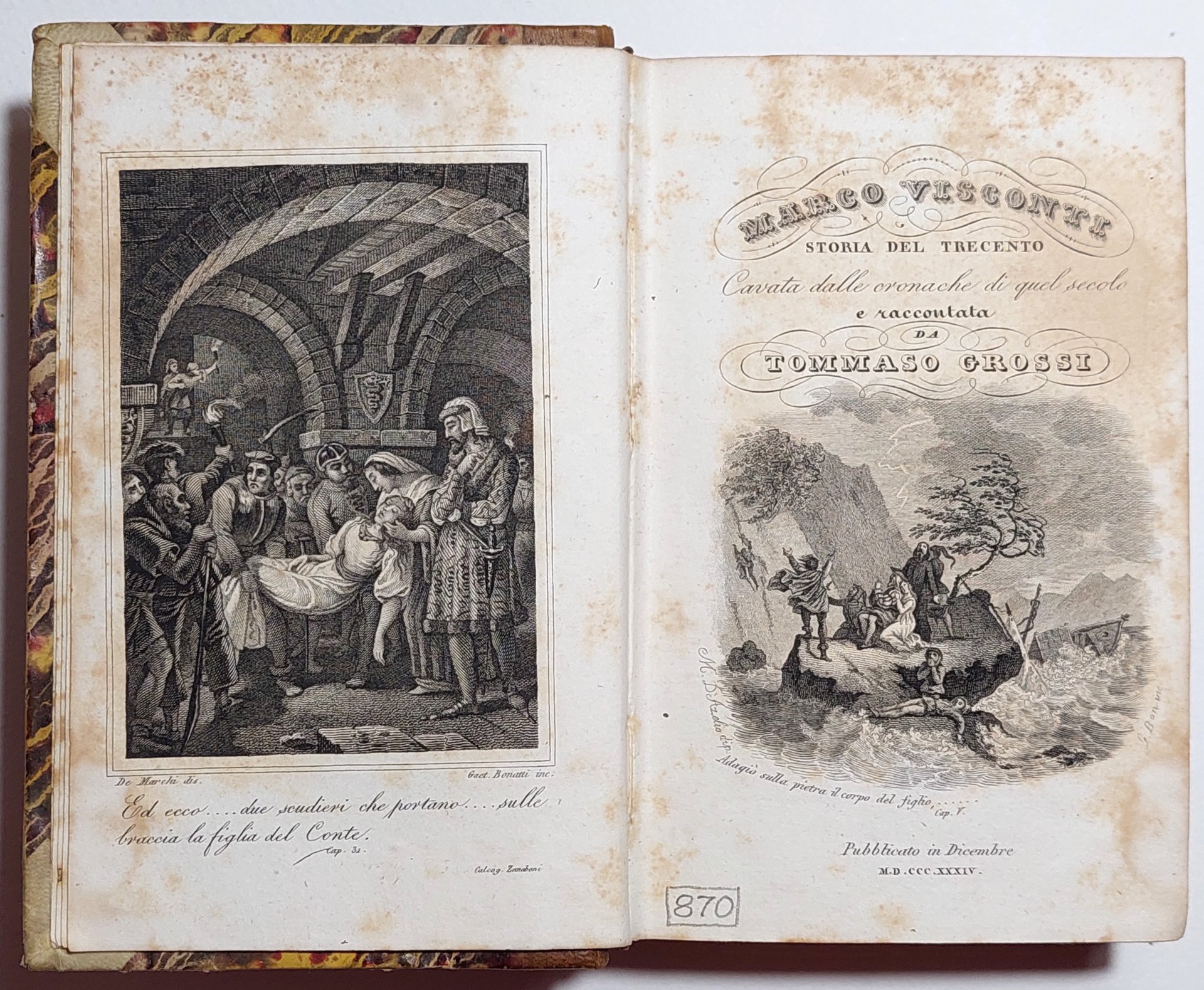 Marco Visconti Storia del Trecento cavata dalle cronache di quel secolo e raccontata da Tommaso Grossi 1834 Torino presso Carlos Schiepatti 2° edizione
